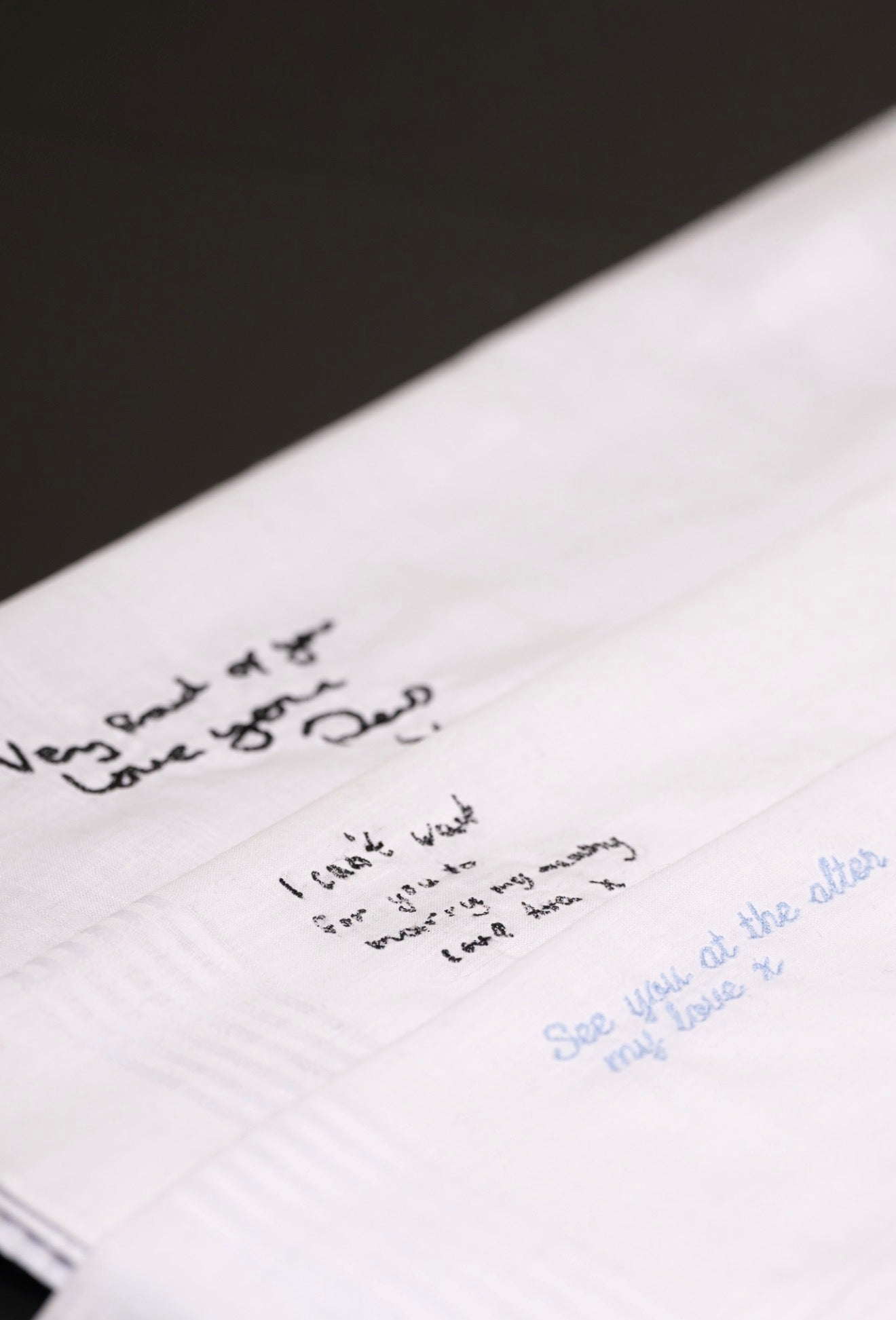 A message from a parent, child, partner or someone no longer present is stitched exactly as it was written. Every curve, pause and imperfection kept intact, honouring the original handwriting without alteration.