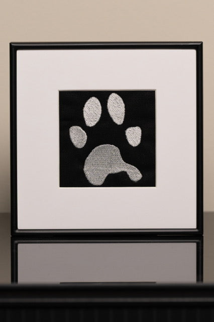 A paw or nose print traced exactly as it was & stitched into an heirloom to be with you for a lifetime.