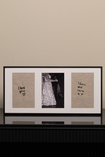 Wedding days, family milestones, shared promises or words that complete each other naturally find their place here. Each element is preserved exactly as it was, with the original handwriting, spacing and character kept intact.